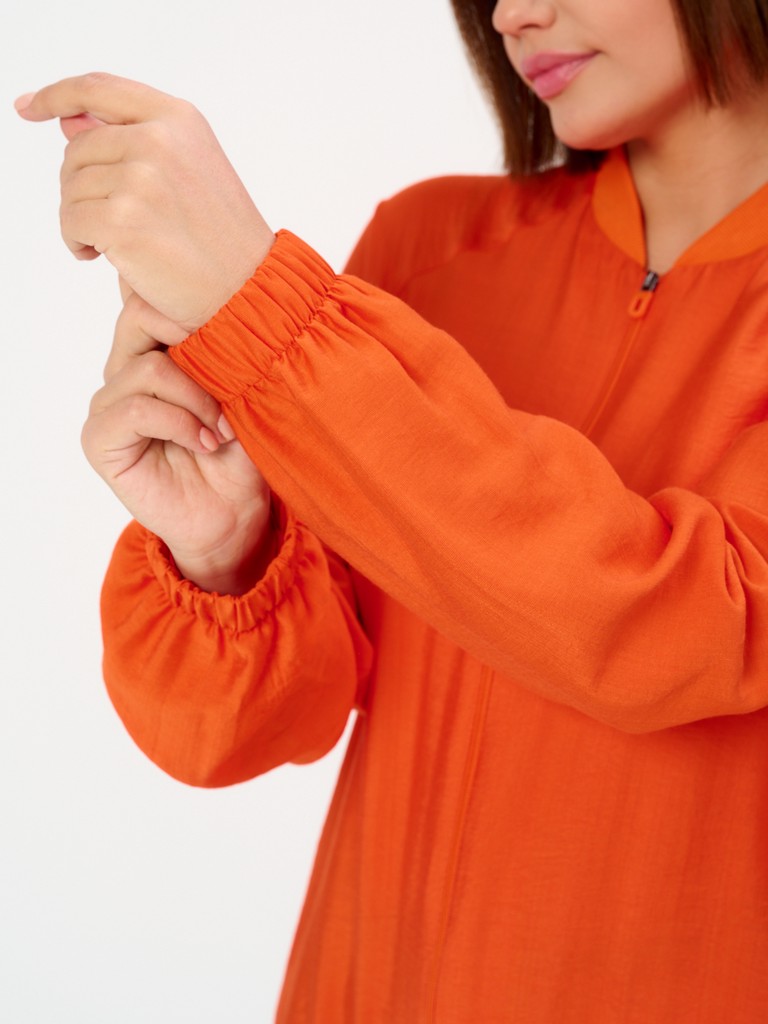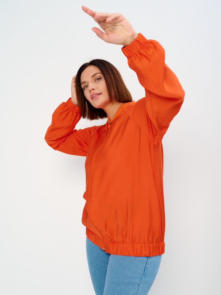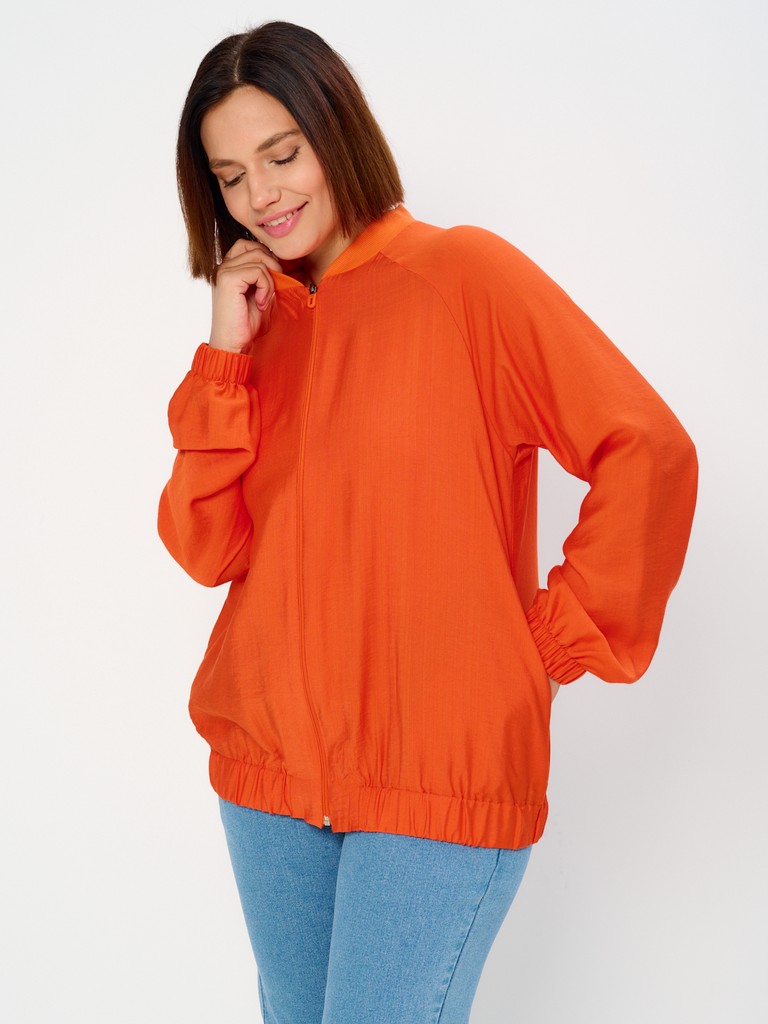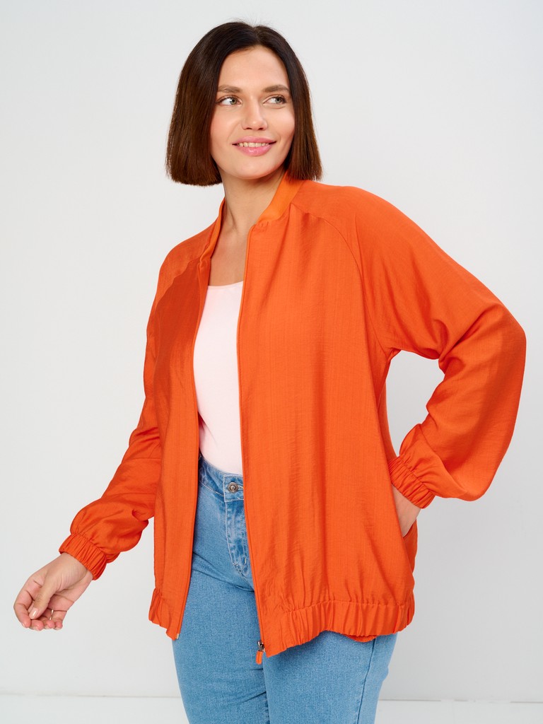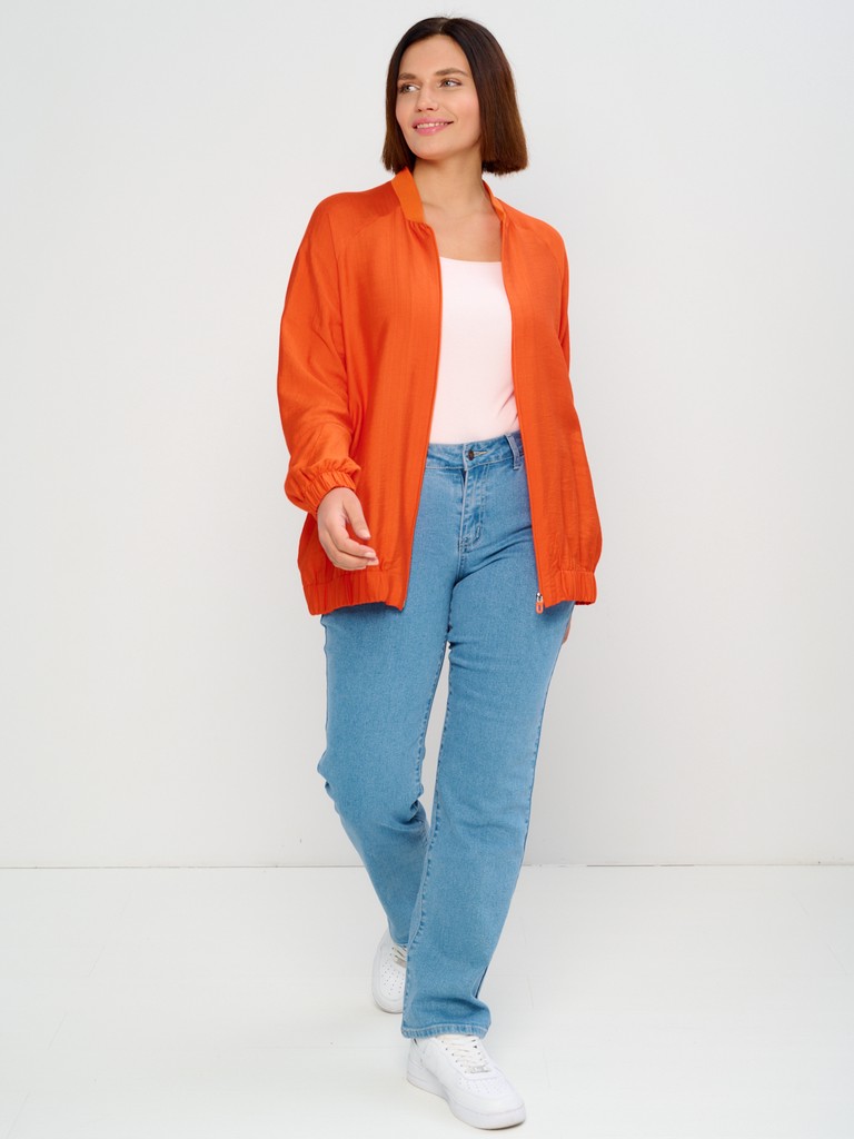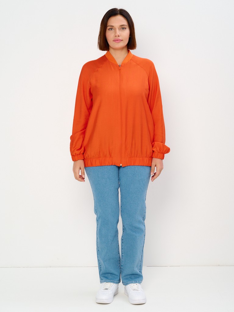 Облегченный жакет-бомбер может стать завершающим штрихом вашего образа, позволяющим создавать ваш уникальный стиль. Облегченный (без подкладки) вариант жакета идеально подходит на весенне-летний сезон. Модель имеет удлиненный силуэт, позволяющий скрывать все нюансы корпулентной фигуры. Изделие может использоваться как в повседневной жизни, так и для особых случаев. Жакет имеет втачной рукав с мягкой эластичной резинкой по низу рукава, позволяющей регулировать длину. Трикотажный воротник стойка в цвет основной ткани придаст образу нотки спортивности. Функциональные карманы в боковых швах добавляют к эстетическому виду еще крайнюю функциональность и удобство. Для тех, кто любит яркие нарядные вещи, этот женский демисезонный вариант станет идеальным выбором - вы точно будете выглядеть неповторимо и стильно