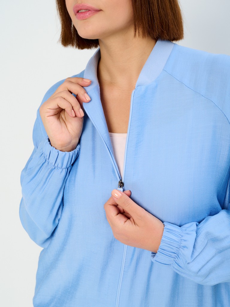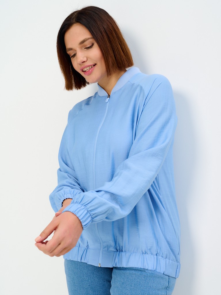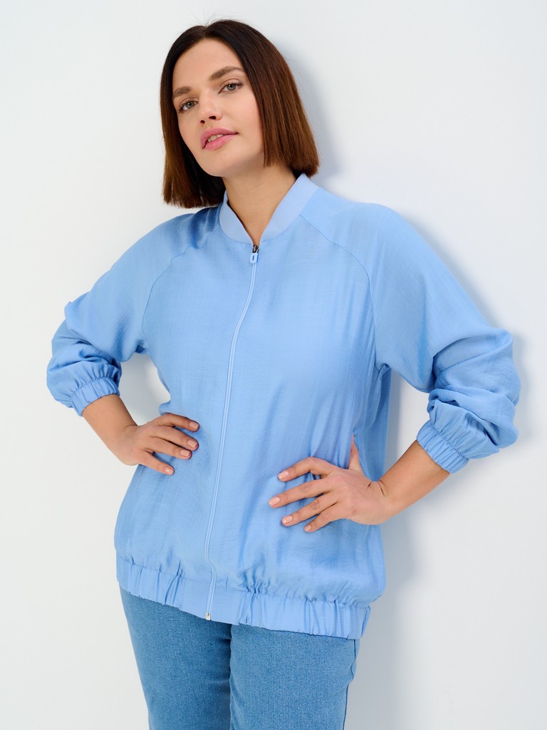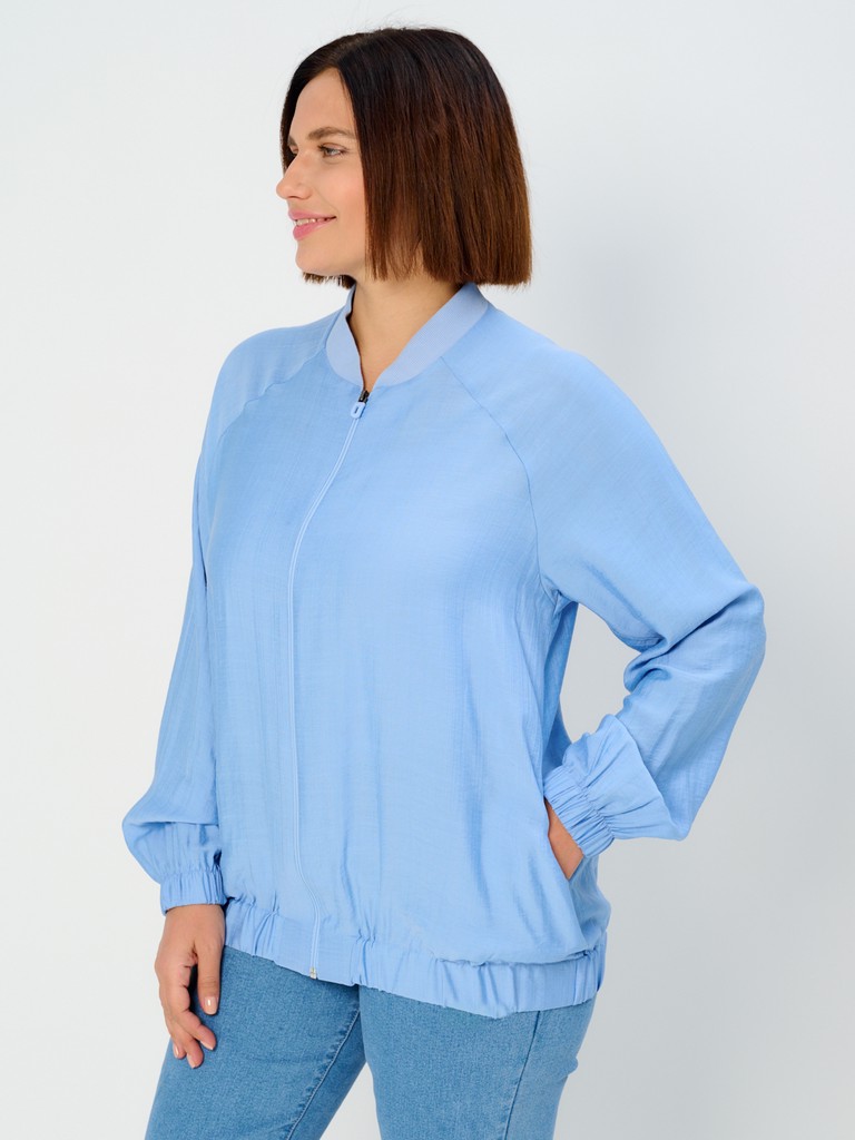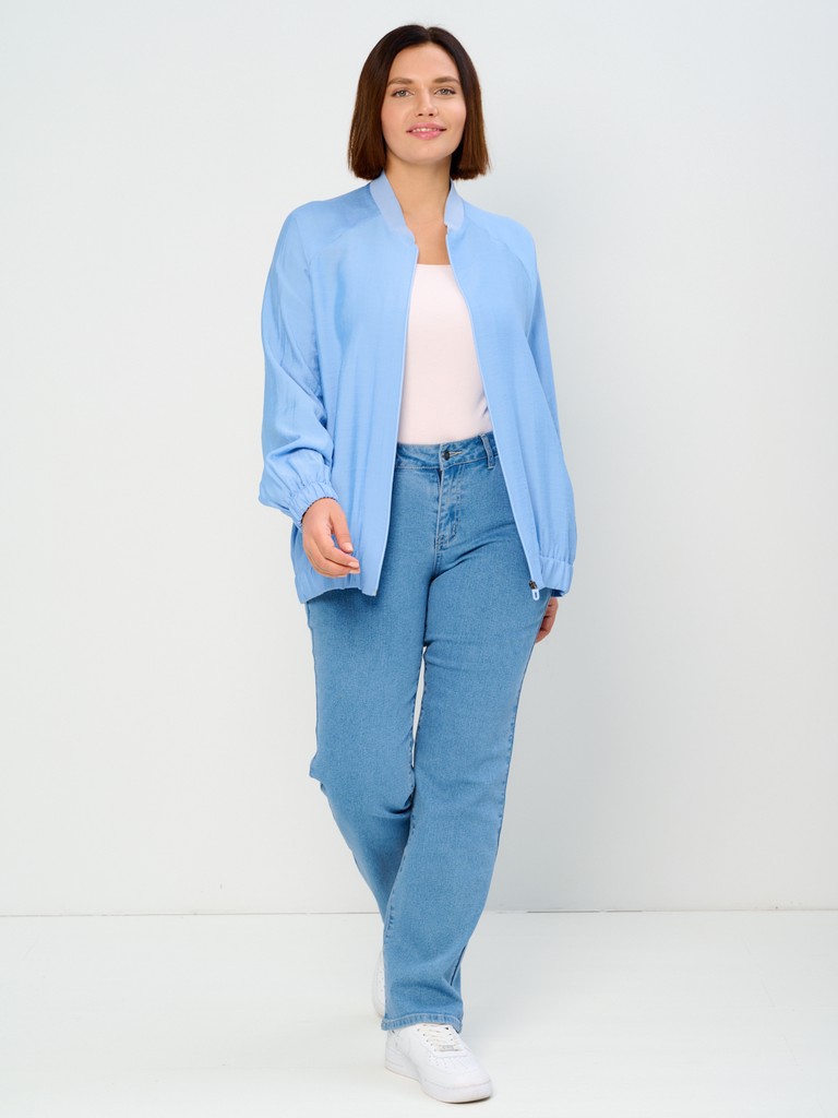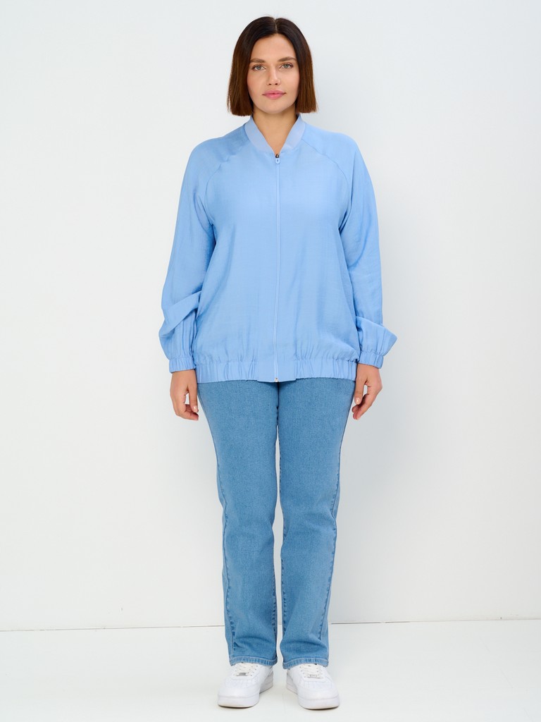 Облегченный жакет-бомбер может стать завершающим штрихом вашего образа, позволяющим создавать ваш уникальный стиль. Облегченный (без подкладки) вариант жакета идеально подходит на весенне-летний сезон. Модель имеет удлиненный силуэт, позволяющий скрывать все нюансы корпулентной фигуры. Изделие может использоваться как в повседневной жизни, так и для особых случаев. Жакет имеет втачной рукав с мягкой эластичной резинкой по низу рукава, позволяющей регулировать длину. Трикотажный воротник стойка в цвет основной ткани придаст образу нотки спортивности. Функциональные карманы в боковых швах добавляют к эстетическому виду еще крайнюю функциональность и удобство. Для тех, кто любит яркие нарядные вещи, этот женский демисезонный вариант станет идеальным выбором - вы точно будете выглядеть неповторимо и стильно